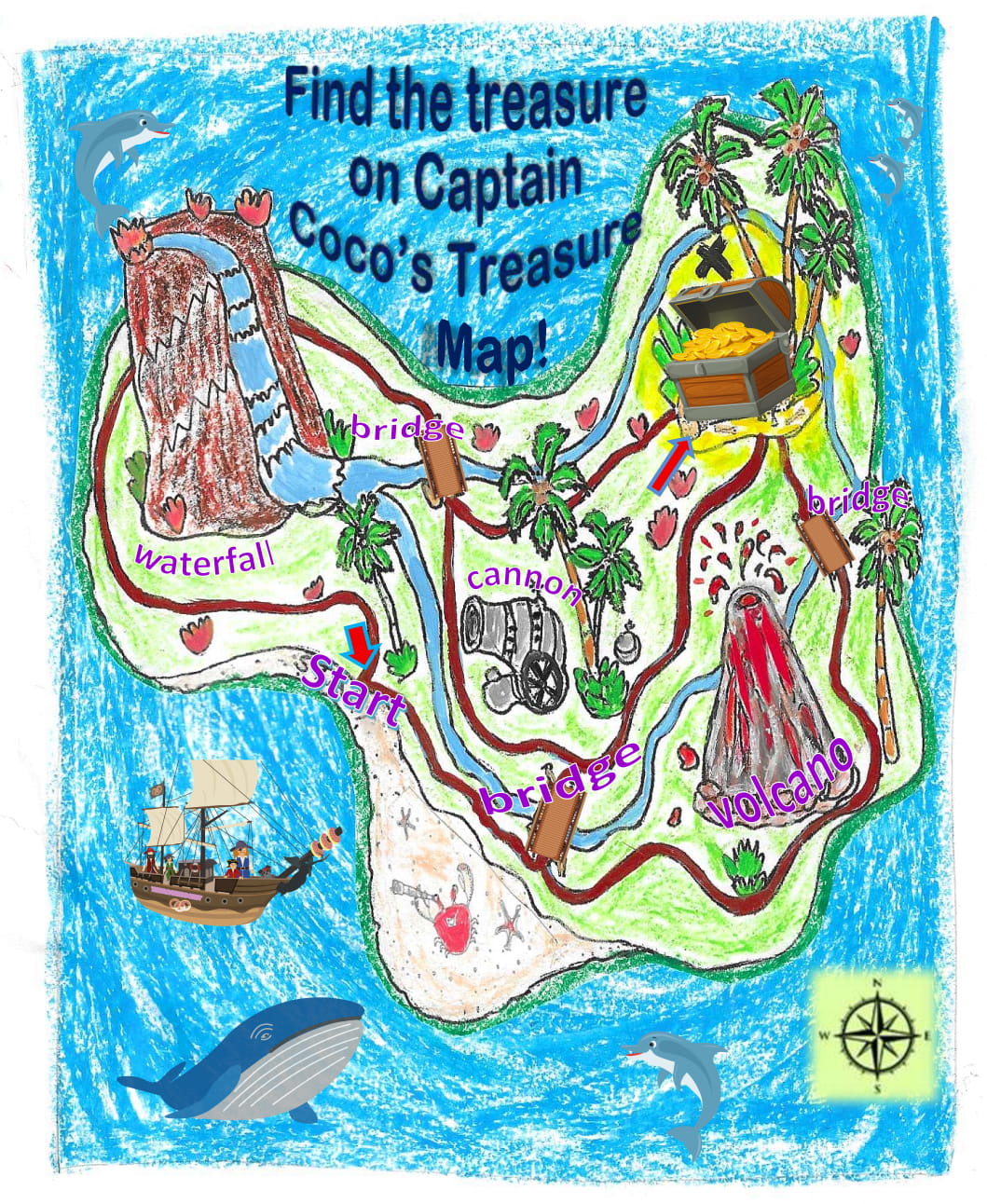 Follow the trail to find the Pirate treasure.